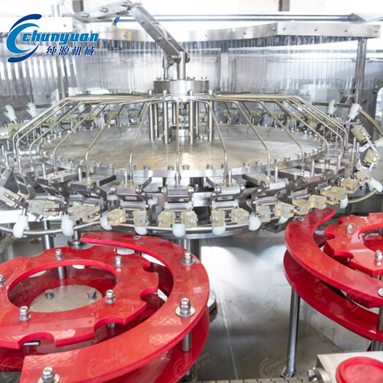 可樂(lè)灌裝機(jī):采用等壓灌裝原理,包括沖洗、灌裝、封蓋等功能,適用于玻璃瓶的灌裝。