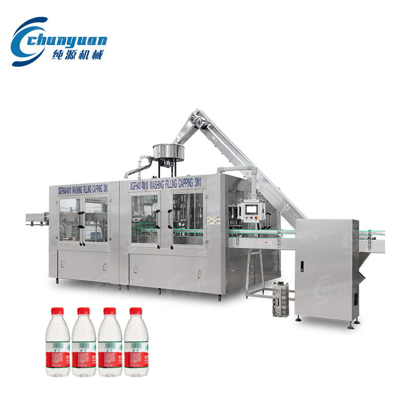 純凈水灌裝機結(jié)構(gòu)緊湊,控制系統(tǒng)完善,操作方便,自動化程度高;