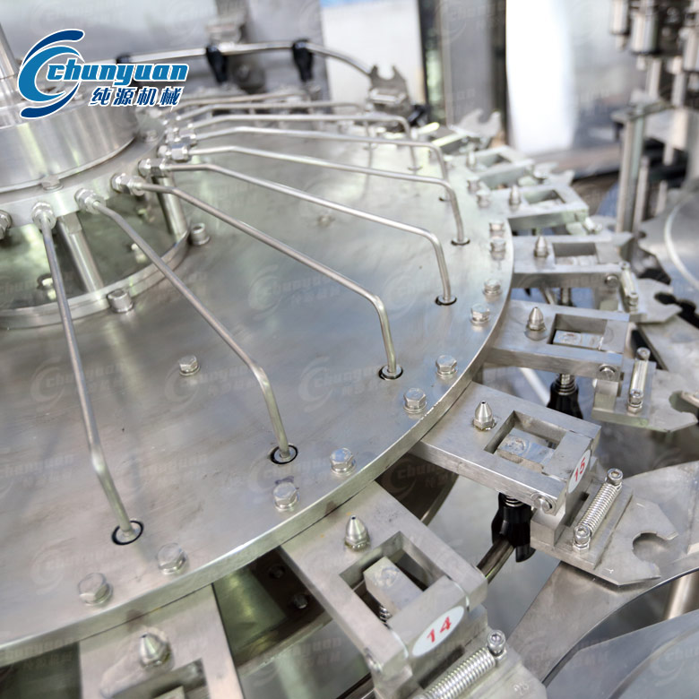 葡萄汁飲料灌裝機(jī)洗瓶部分:全新的不銹鋼夾鉗,結(jié)構(gòu)簡單,調(diào)整方便;與瓶口接觸面積少,有效避免對瓶口的二次污染。