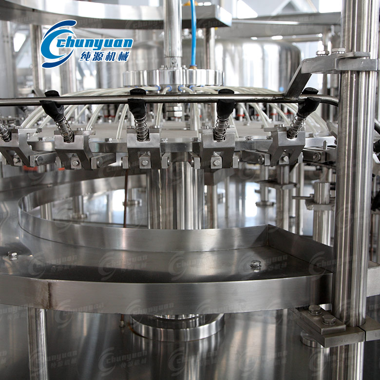 小瓶純凈水灌裝設備集沖瓶、灌裝、封蓋三功能于一體。其設計科學合理,外形美觀,功能齊全,操作維修方便,自動化程度高。