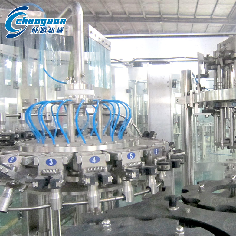 組內(nèi)一次性完成洗瓶、灌裝、封蓋三道工序,其瓶子損壞小、傳動(dòng)準(zhǔn)確平穩(wěn)、瓶型更換快捷。特殊規(guī)劃的沖瓶機(jī)瓶夾結(jié)實(shí)耐用,不接觸瓶口螺紋部位,防止瓶口的二次污染。與液體接觸的零部件均采用優(yōu)質(zhì)不銹鋼材料或食品級(jí)工程塑料,相符合國(guó)家食品衛(wèi)生標(biāo)準(zhǔn)。