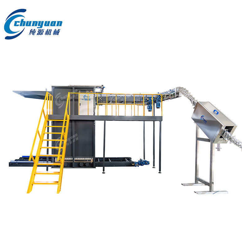 易拉罐卸垛設(shè)備通過(guò)特定的機(jī)械結(jié)構(gòu),將堆疊于棧板上的空罐,由下而上一層層的提升并推至輸送機(jī)上。整個(gè)過(guò)程由自鎖式升降系統(tǒng)裝置控制,能單獨(dú)調(diào)整上升或下降的速度,以適應(yīng)不同的操作需求???。卸罐動(dòng)作通常由電機(jī)帶動(dòng)鏈輪、鏈條裝置進(jìn)行,整層的空罐被推至網(wǎng)式輸送機(jī)上,然后回歸至準(zhǔn)備位置,繼續(xù)將下一層推出???。