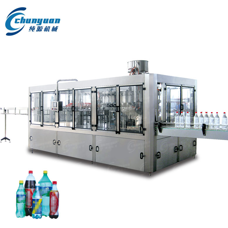 碳酸飲料等壓灌裝機(jī)主要用于碳酸飲料、含汽飲料的灌裝作業(yè),適用于生產(chǎn)350ml、500ml、1L、1.5L等容量的PET瓶含氣飲料、碳酸飲料的灌裝,如可樂、雪碧、含氣蘇打水、鹽汽水等含有二氧化碳?xì)怏w的飲料。飲料灌裝機(jī)將沖洗、灌裝、旋蓋三個(gè)功能組合在一個(gè)機(jī)體上,全過程實(shí)現(xiàn)自動(dòng)化。各部分的適用瓶型調(diào)整輕松自如,簡(jiǎn)便快捷。灌裝方式采用了新型的微負(fù)壓灌裝,穩(wěn)定可靠,所以與相同規(guī)格的灌裝機(jī)相比,等壓灌裝設(shè)備的作用更大。